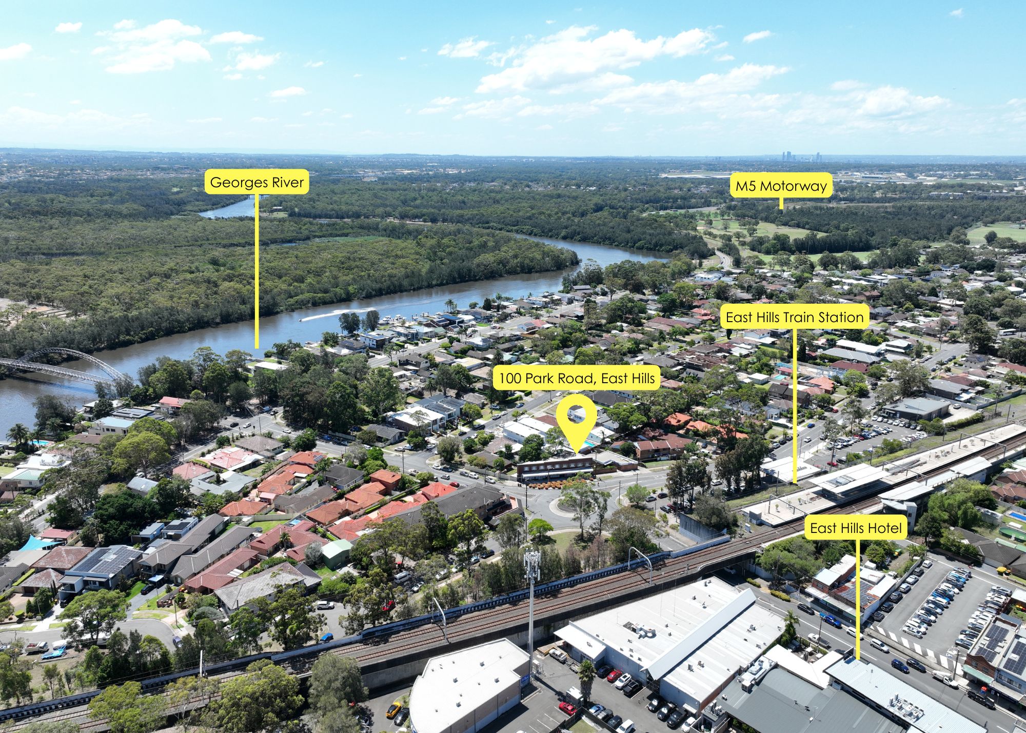 - Directly across East Hills Train Station